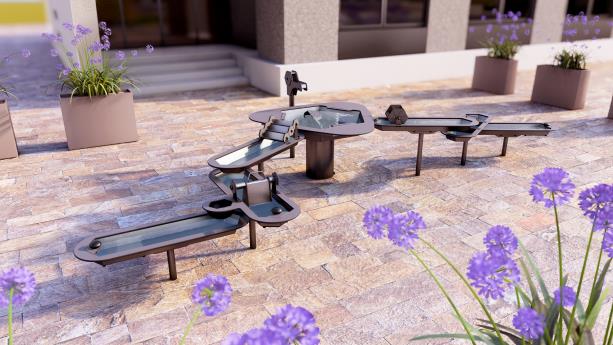 HAGS Water Play Storforsen is the largest combination and most engaging water play system in the range, featuring eight interactive elements: Water Tap, Triangle Water Table, Channel with Wheel, Channel with Stair Steps, Sluice Channel, Shovel Channel, and two Channels with Drainage Plug. Designed for up to 15 children, it offers enhanced play value, promoting cooperation, creativity, and hands-on discovery. Suitable for schools, preschools, public parks, and commercial or leisure playgrounds, Water Play Storforsen is made from durable, weather-resistant materials and supports both physical and cognitive development through immersive water play. All elements are made from durable HPL, plastic, and stainless steel, including fasteners, making it suitable for long-term use in wet or demanding conditions. The design also allows for easy access, ensuring inclusive and user-friendly play. The Triangle Water Table has the option to add additional Water Buckets (scoops) (up to 3 max per table) for additional fun and play value. This variant is grey.