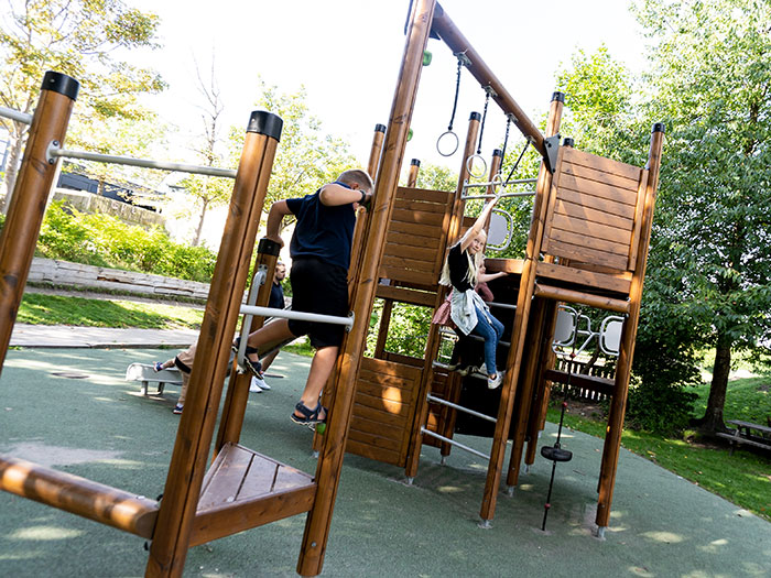 Yeni okul alanı, aktif oyun oynamayı ve fiziksel gelişimi teşvik ederek hem eğitimi hem de refahı destekleyecek şekilde tasarlanmıştır. Her bir ekipman özenle seçilmiş ve çevredeki peyzaja saygı gösterilerek düzenlenmiştir, böylece oyun alanının doğal çevreyle sorunsuz bir şekilde çalışması sağlanmıştır.